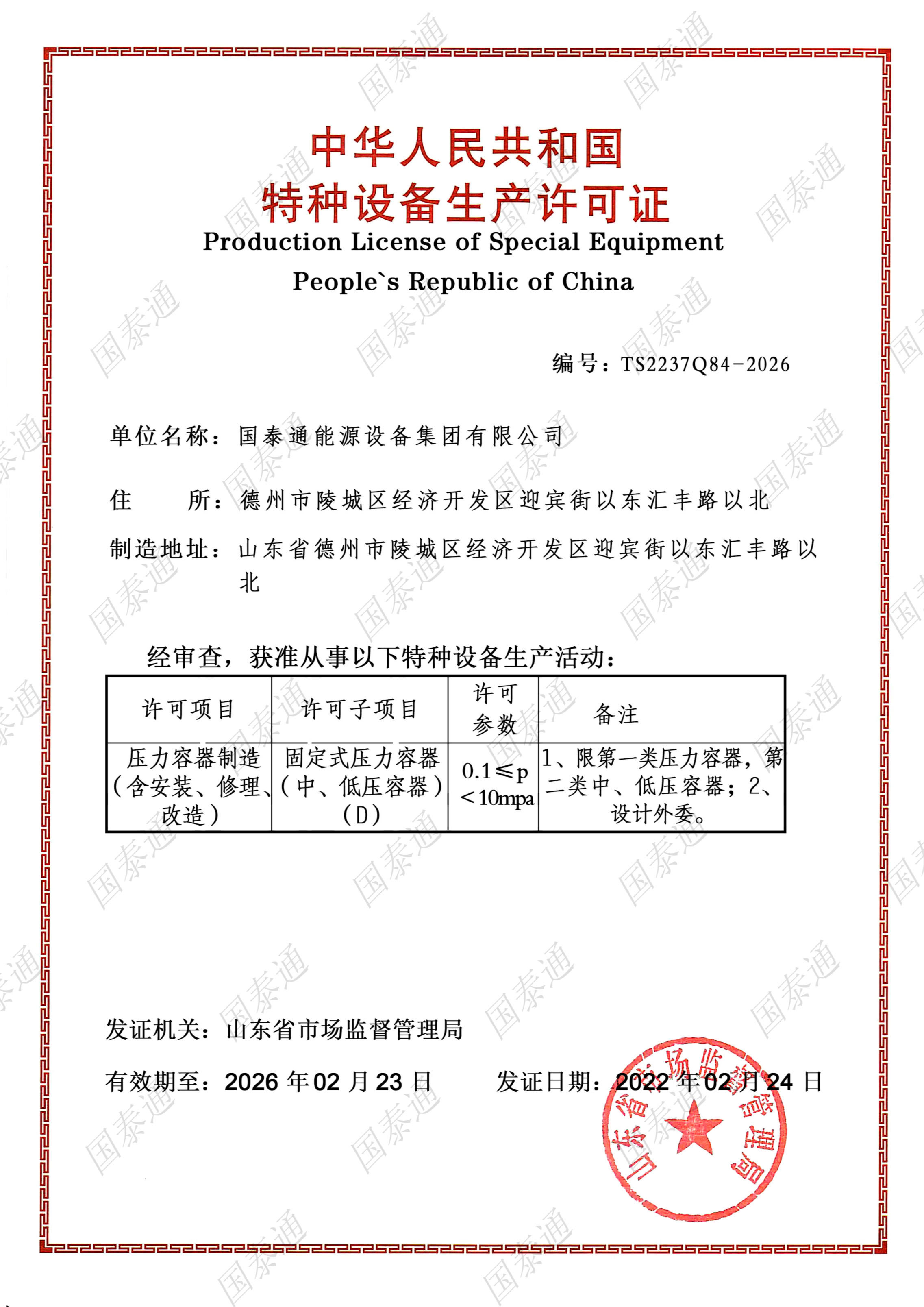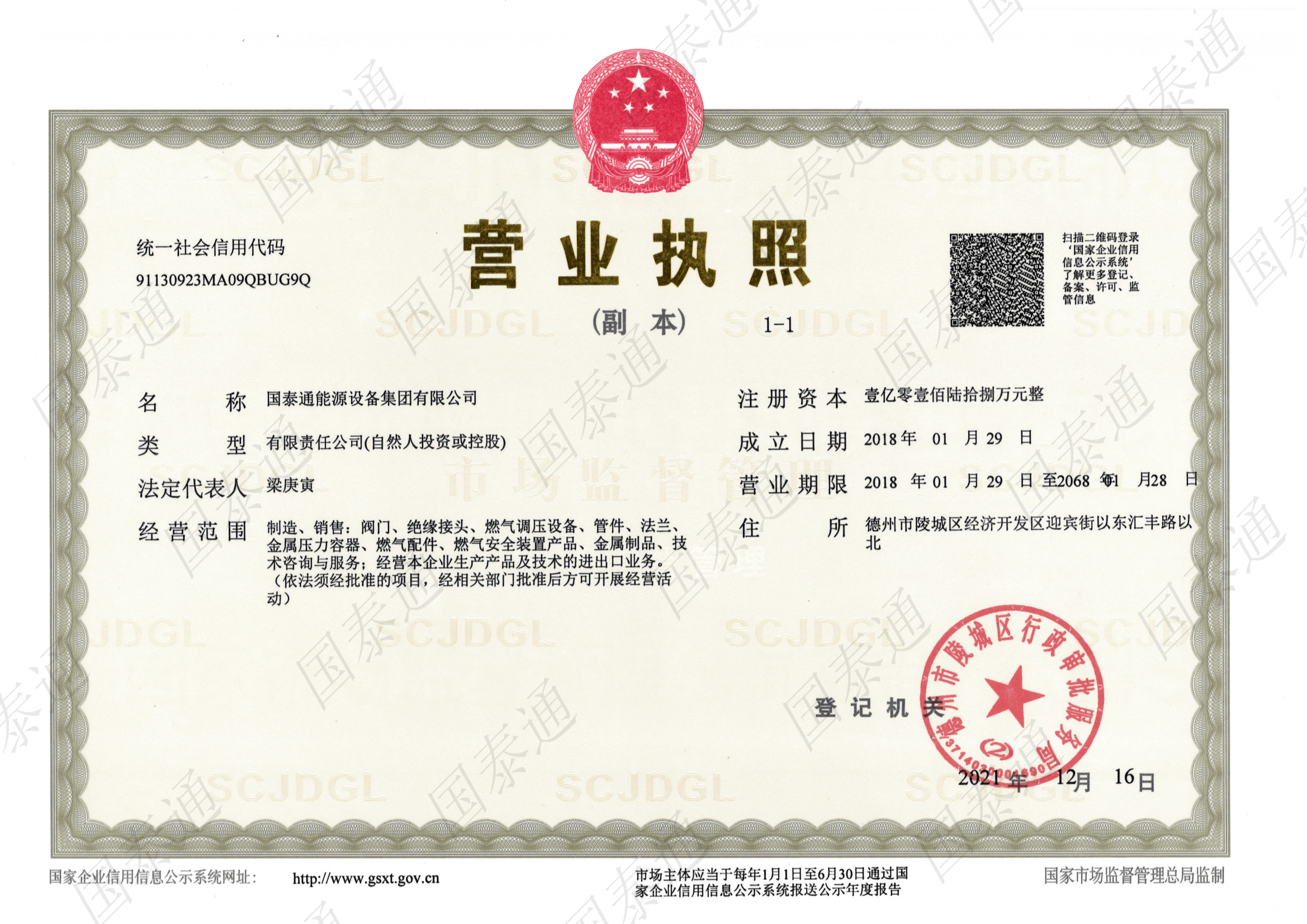 國泰通能源設備集團有限公司是一家國家級高新技術企業,專注于閥門和燃氣調壓輸配設備設計、研發、生產、銷售、服務于一體的系統集成解決方案服務商。公司成立于2011年,注冊資金10168萬元,擁有北京運營中心和山東生產中心兩大基地,北京運營中心主要承擔集團公司的戰略規劃發展,山東生產基地承擔集團公司產品研發、生產和銷售服務,集團公司山東生產基地占地面積5萬余平方米,總建筑面積3萬余平方米,有著現代化的廠房和辦公大樓。集團公司經過十多年的茁壯發展,現擁有中、高級工程師27名,生產服務技術人員二百余人......